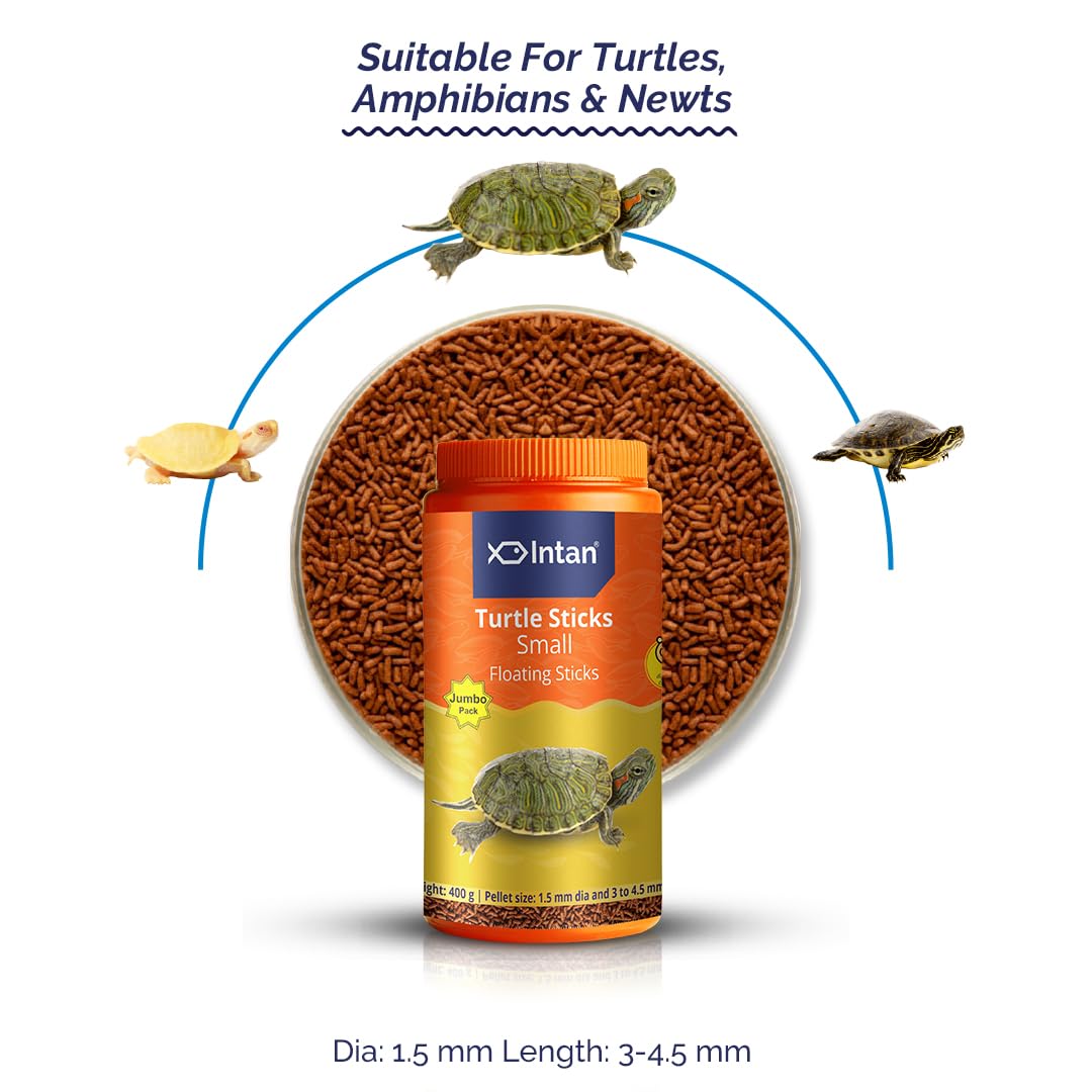 Aquatic Intan Turtle Food for Health & Growth | Small Floating Sticks Suitable for Turtles | Nutritious Feed for Better Shell Health | Jumbo Pack 400 gm, 1.5 mm Día & 3 to 4.5 mm Length