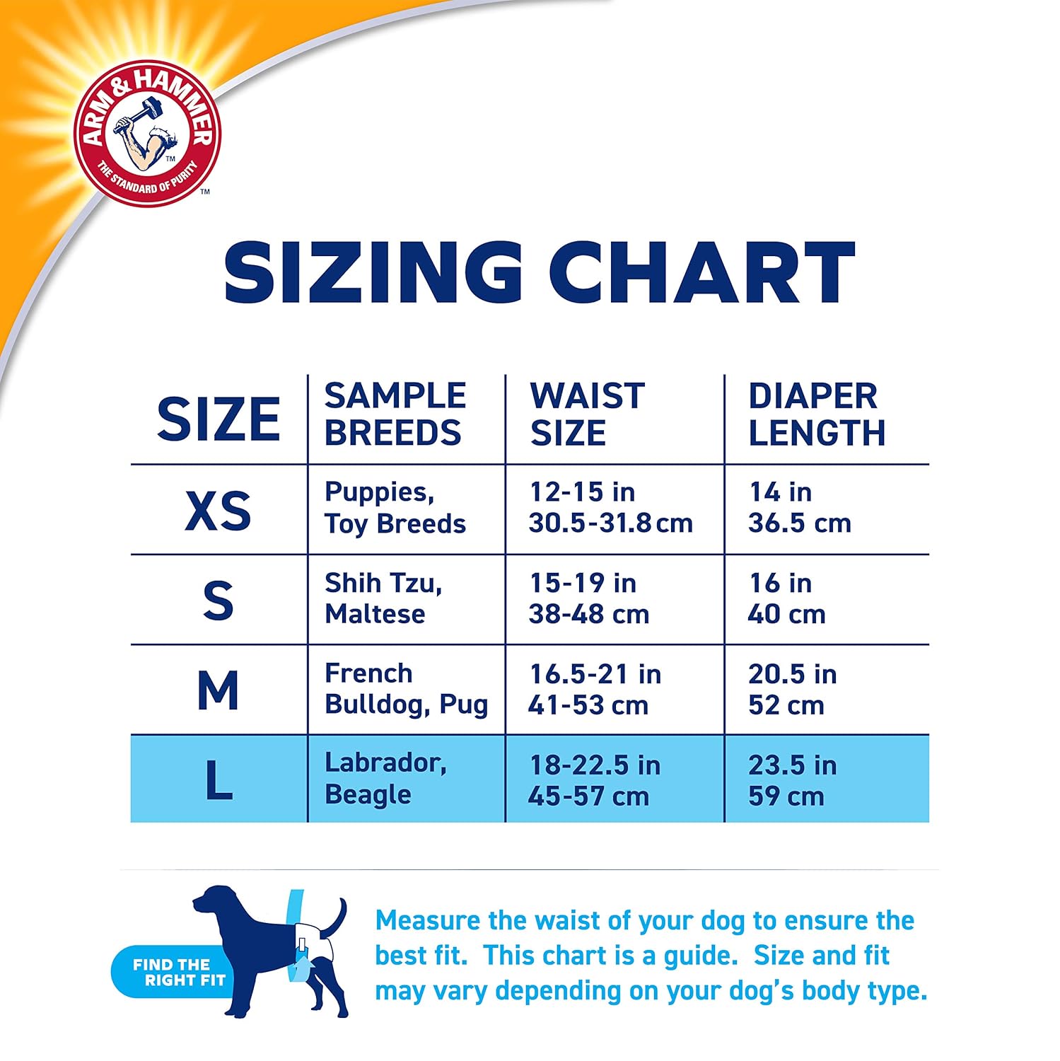The Arm & Hammer name has been trusted for over 100 years for gentle yet effective cleaning. Arm & Hammer for Pets brings those same deodorizing methods to our companion animals, making life easier for pet parents. Keep your female dog, and your home, clean and dry with Arm & Hammer for Pets Female Dog Diapers. This 12 pack of disposable female dog diapers is designed just for large dogs. Ultra absorbent female doggie diapers have leak-proof protection to prevent accidents on carpets, floors, and furniture. Incontinence and leaking can happen to any dog. Help yours feel better in and around the home by using adjustable, comfortable dog diapers. Female dog diapers like these diapers for female dogs are important dog supplies for training dogs. Doggy diapers and doggie diapers could be a dog diaper for doggie diapers for female dogs small or doggie diaper for female dogs large or doggie diapers for female dogs medium. Puppy diapers like dog diapers for dogs female could also be dog period panties or disposable dog diapers female dog pants dog underwear dog pampers dog incontinence products dog diapers female medium, pet diapers for female dogs, disposable dog diapers, dog period diapers female, dog diaper liners, dog panties, dog underwear female, dog diapers female washable, small dog diapers, large dog diapers, medium dog diapers, dog diaper female, xl dog diapers female, dog pampers. YOUR SATISFACTION IS OUR PRIORITY: If you have any questions or feedback about this product, please reach out to us directly at Fetch for Pets.