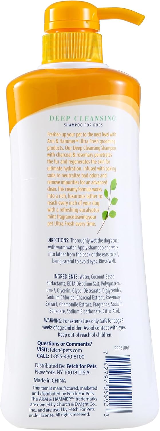 Arm & Hammer for Pets Ultra Fresh Deep Cleansing Dog Shampoo with Charcoal & Rosemary, Value Size 24oz | Great Smelling Pet Grooming and Bathing Supplies, Puppy Wash