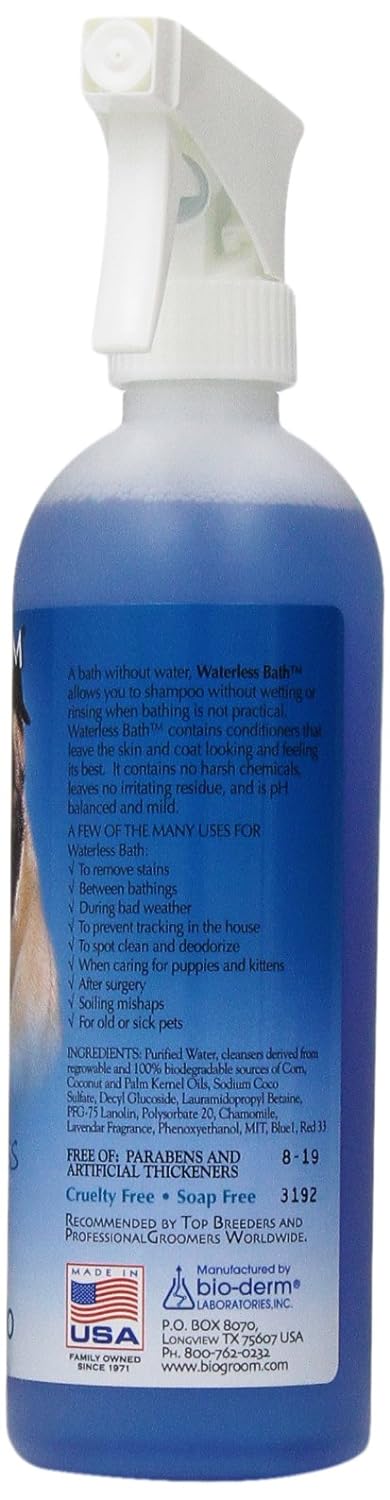 Bio-groom waterless bath no-rinse shampoo makes you enable to clean your pets when bathing is impractical.