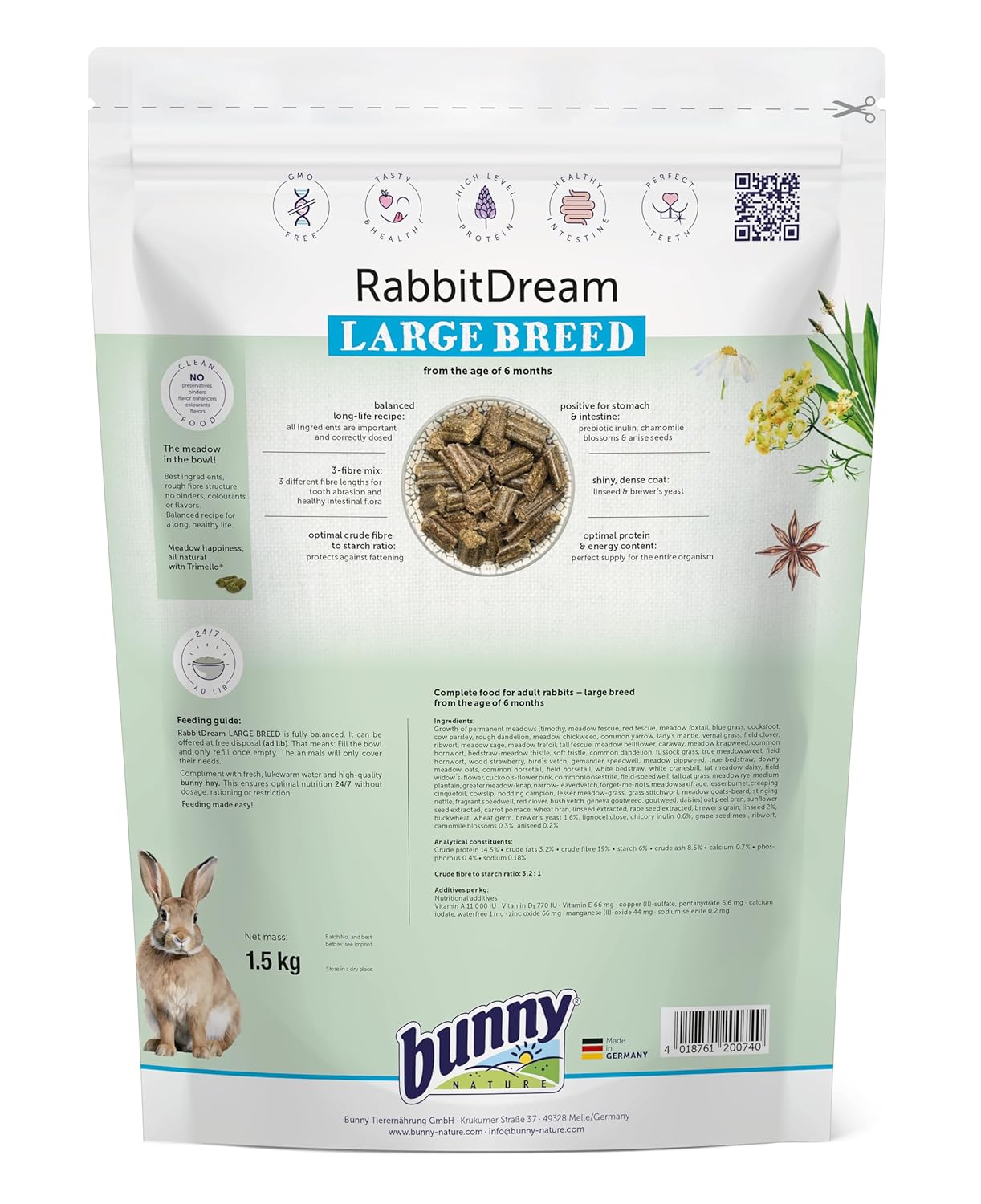 Bunny nature Rabbit Dream Large Breed 1.5kg | Natural Herbal Mix for Rabbits Food | High-Fiber, Nutritious Blend for Digestive Health and Enrichment