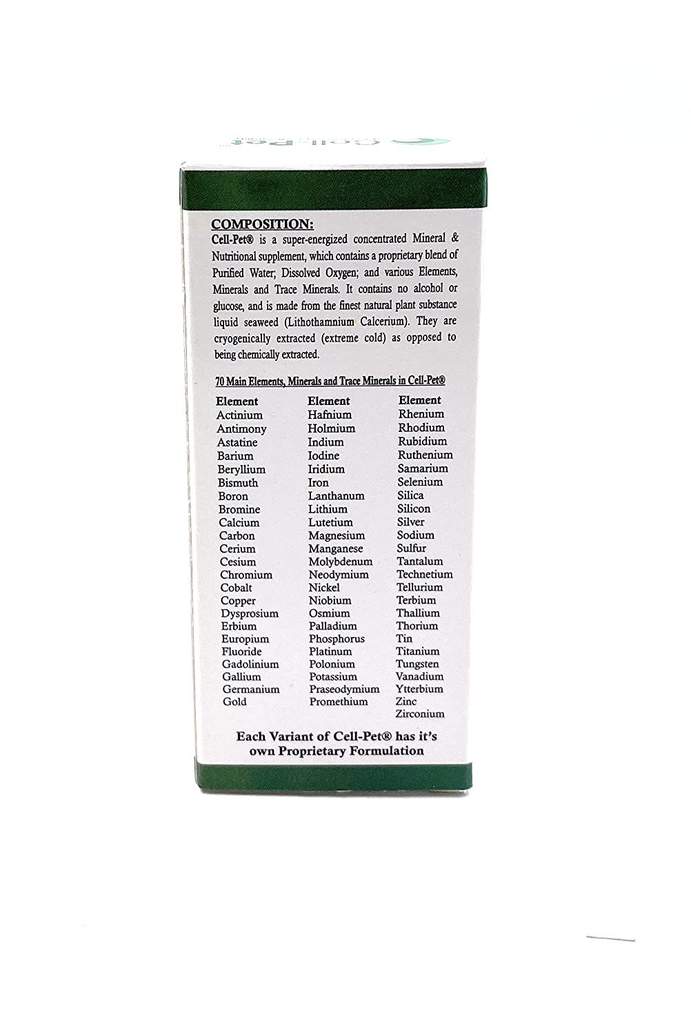 cell pet enhanced pet well being is a super energised concentrated supplement for dog cat birds horse all pets and animals. a user manual is given inside the box.
