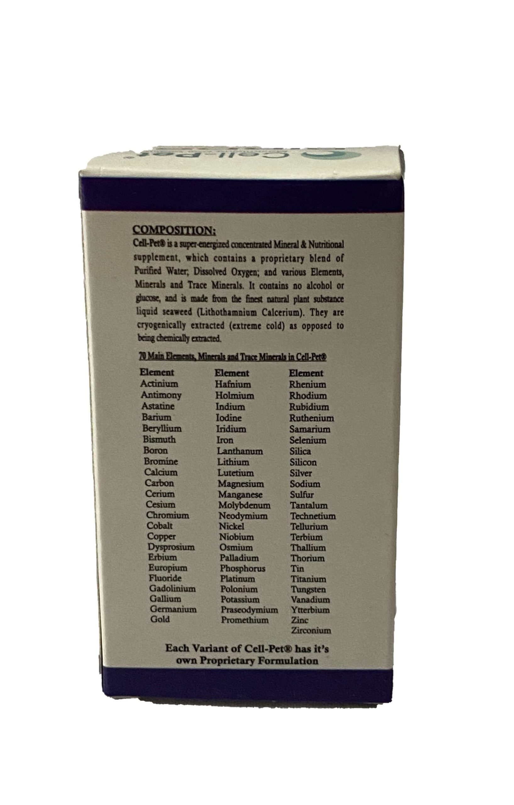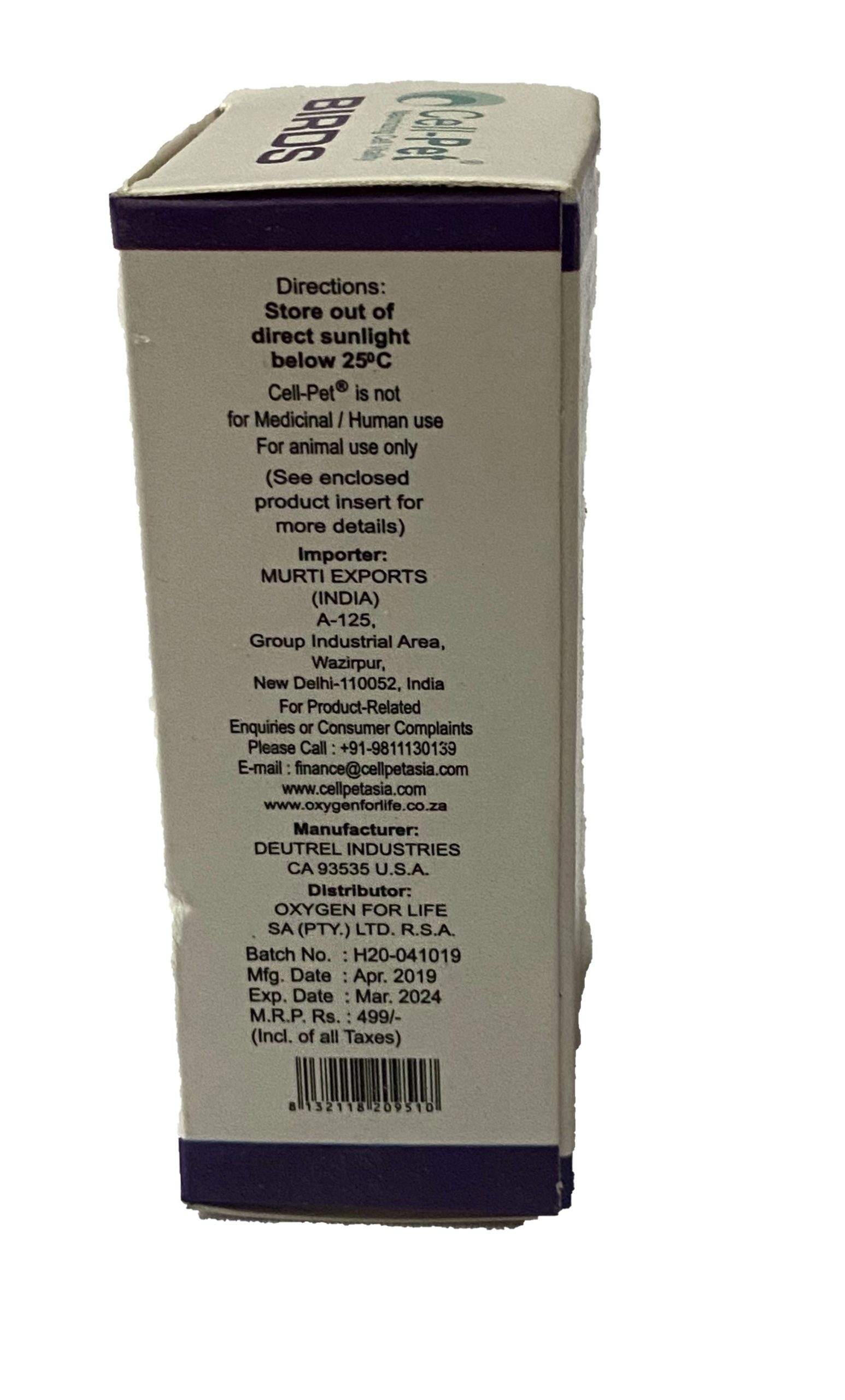 this cell pet maximize cell vitality in birds. It reduces distress, disease and mortalitiy. It enhance color of feathers. It also detoxifies and nourishes cells of exotic all kind birds.