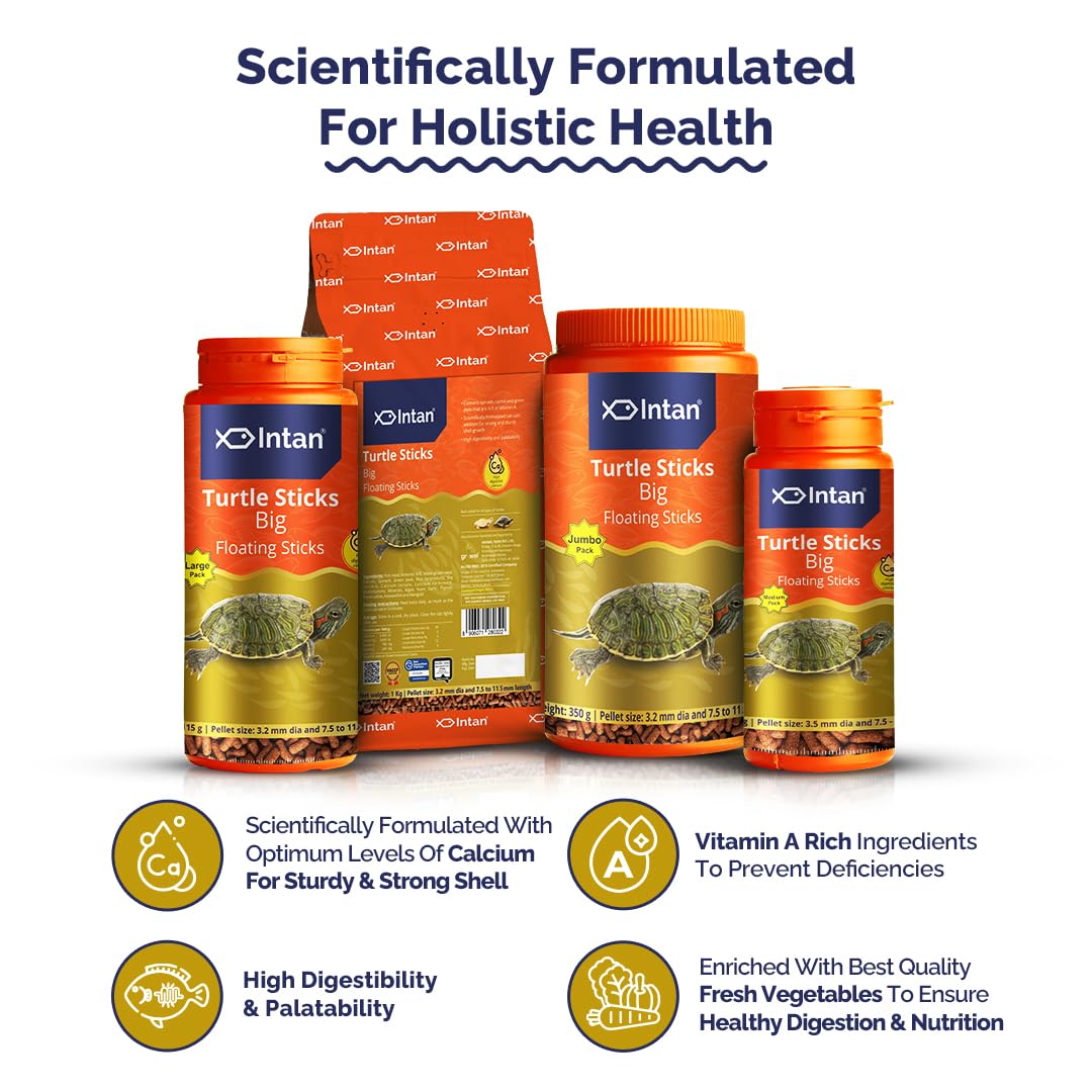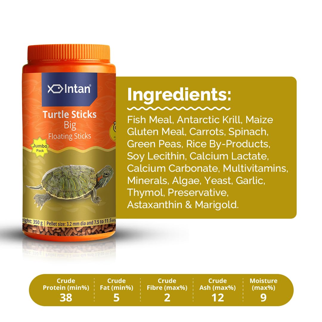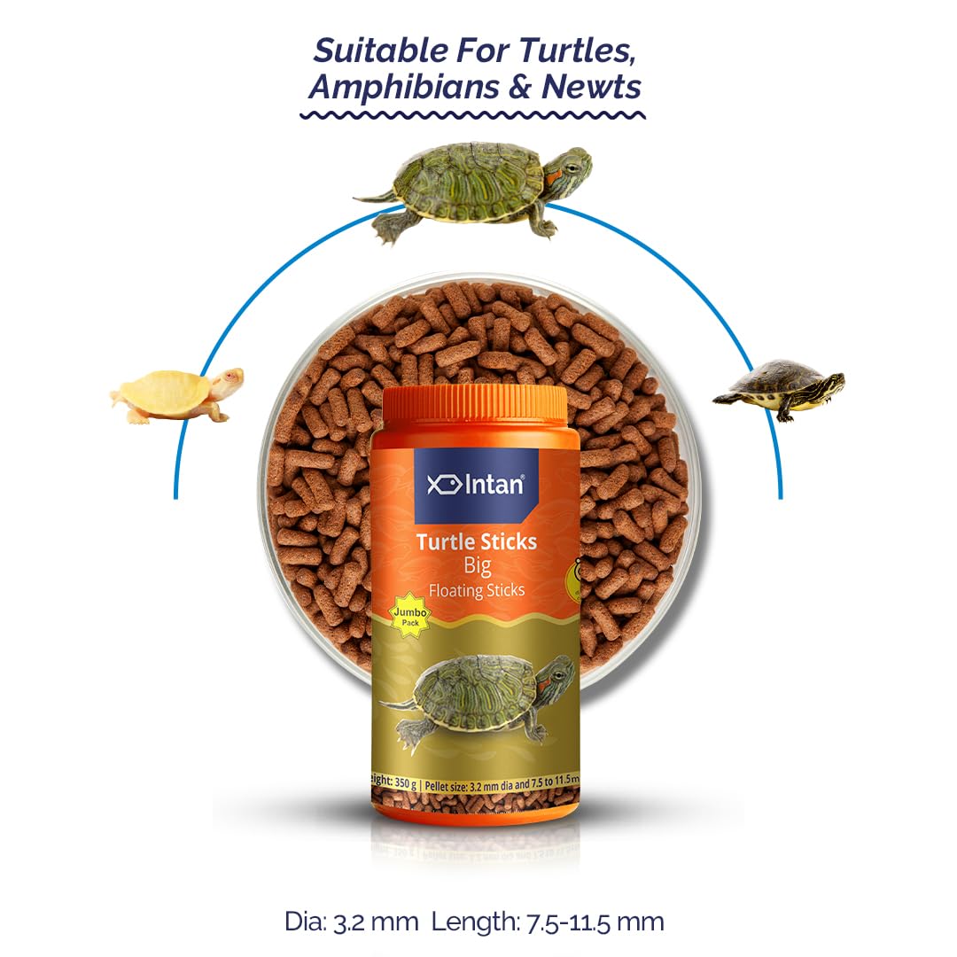 Growel Intan Turtle Sticks (Big 3.2mm x 7.5-11.5mm Floating) | 350gm – Highly Nutritious Ornamental Fish Food for Turtles, Amphibians & Newts