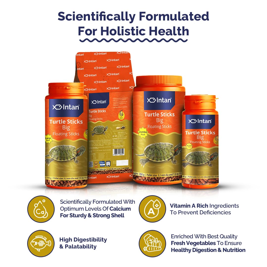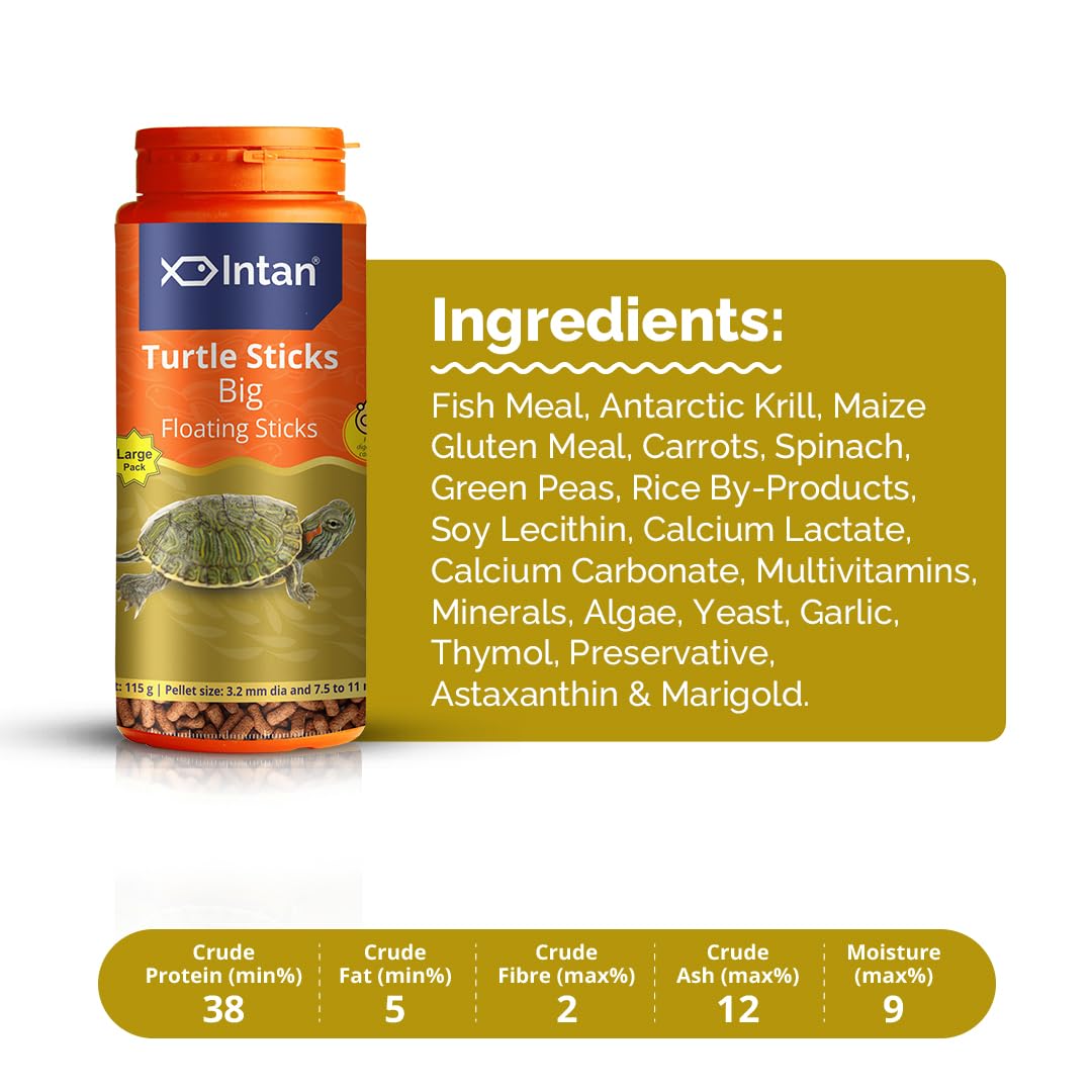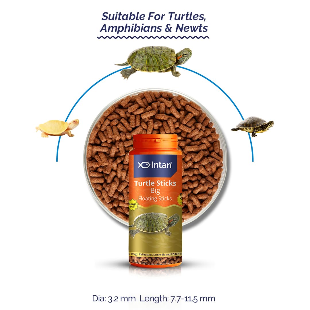 Intan Aquatic Turtle Food For All Life Stages For Growth & Health | Big Floating Sticks Suitable For Turtles | Nutritious Feed For Better Shell Health | Large Pack 115 Gm, 3.2 Mm Dia