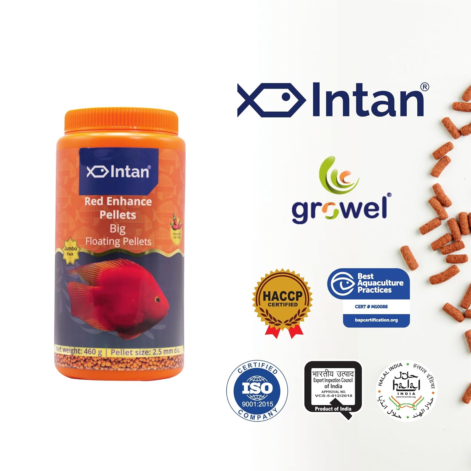 Intan Growel Red Enhance Pellets (Big 2.5Mm Floating) | 460Gm – Highly Nutritious Ornamental Fish Food for Parrotfish & Red Coloured Fish for All Life Stages