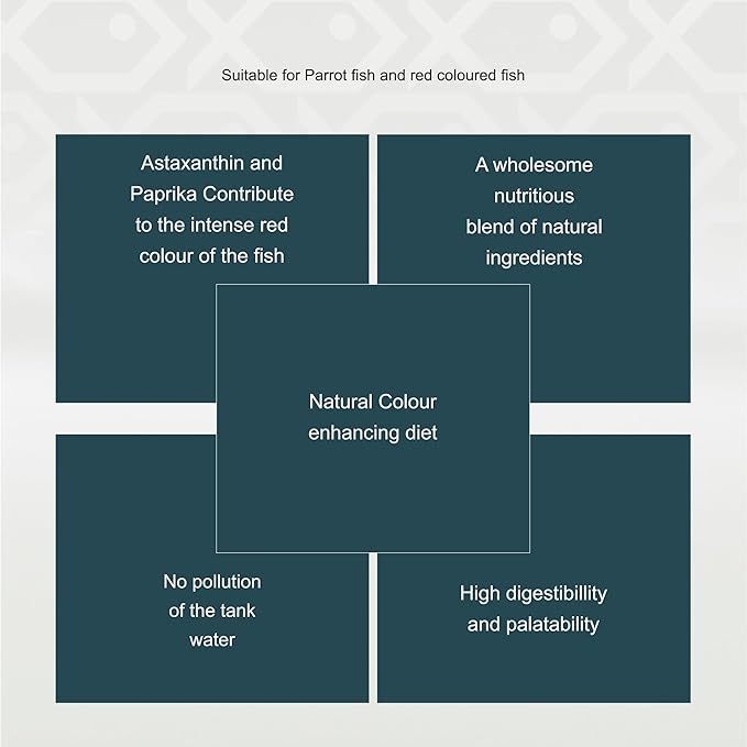 • Astaxanthin & paprika contribute to the intense red colour of the fish