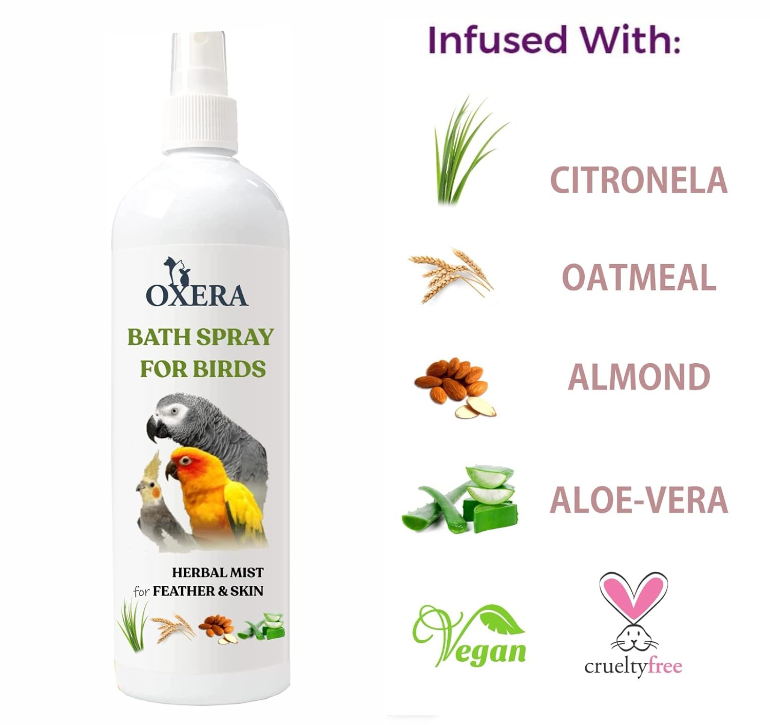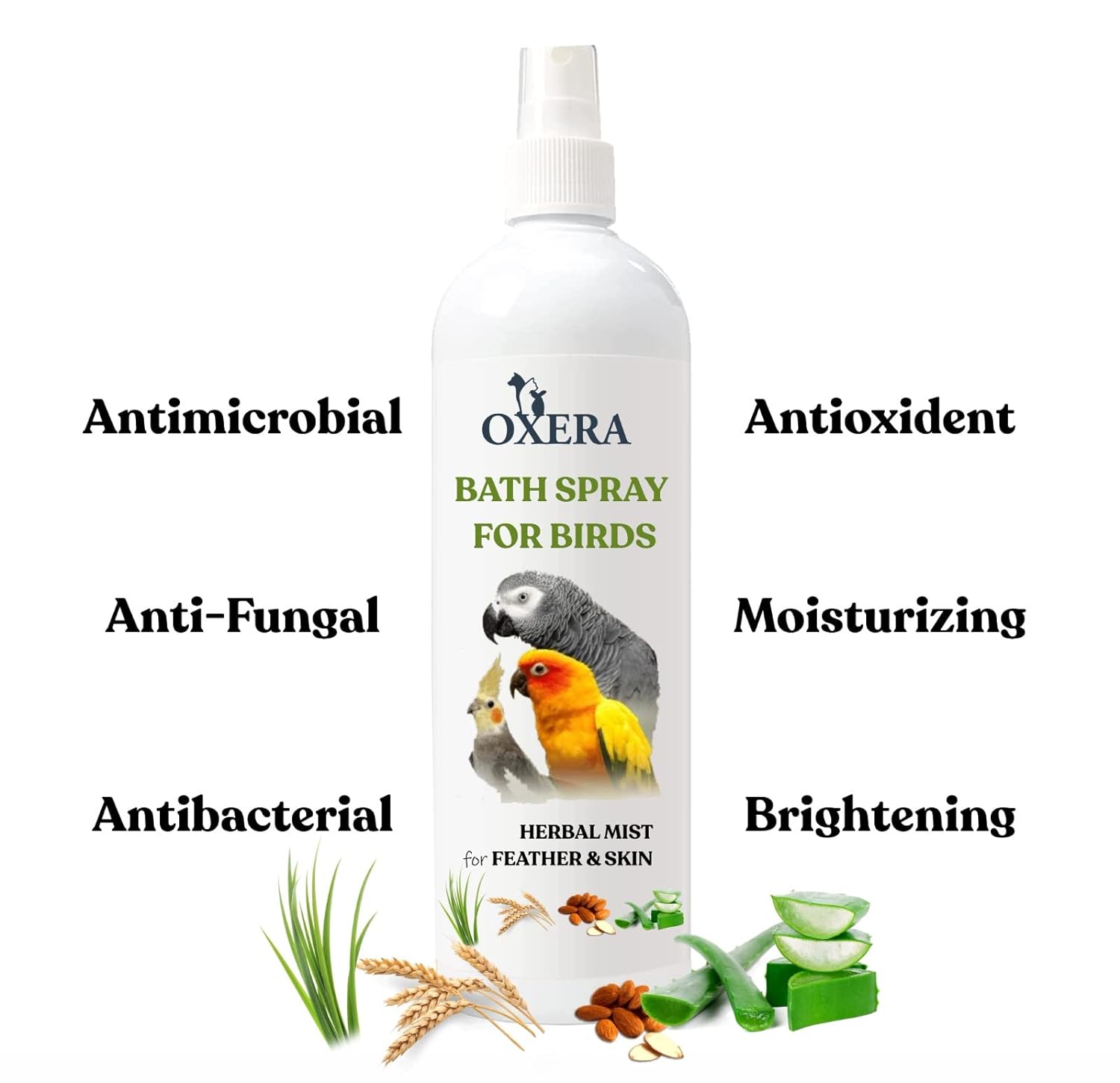 OXERA BIRD DRY BATH SHAMPOO to CLEAN FEATHER AND HELP TO AWAY FUNGAL ISSUES, INCLUDE LEMON GRASS, ALMONDS, ALOEVERA, OATMEAL 200 ML FOR BUDGIES, LOVEBIRD, COCKATIEL, CONURE, MACAW, FINCHES, CANARY, PARROTS, GREY PARROTS, MACAW