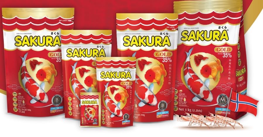 Sakura Gold Super Premium Fish Food with Vitamin Complexes + Krill & Astaxanthin in Medium 4mm Pellet 500gm
