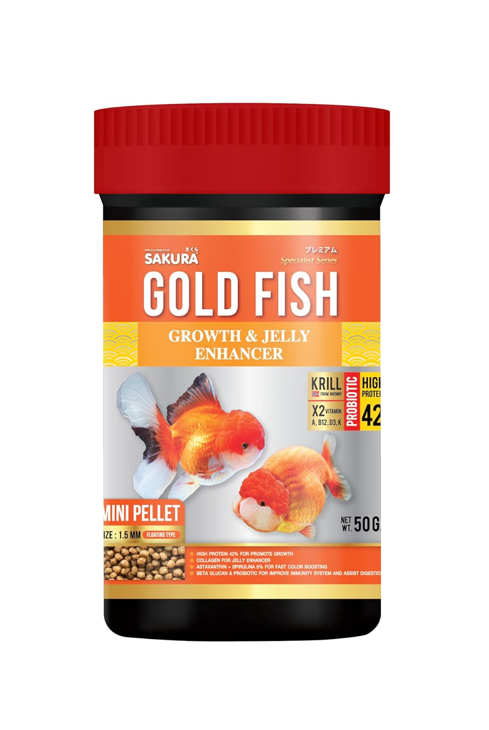 Sakura Super Premium Special Food for Gold Fish with Krill,Vitamin (A,B12,D3,K) & Probiotic Mini Pellet 1.5 mm- 100gm